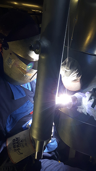 Lassen van onderdelen voor stoominstallaties.